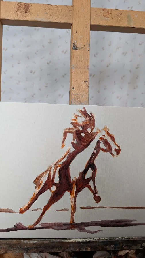 "Reneeās art always tells a story and I was so drawn to Ā“Held By Traditionā. The colours and mood, movement of the sky and female rider spoke to me!"